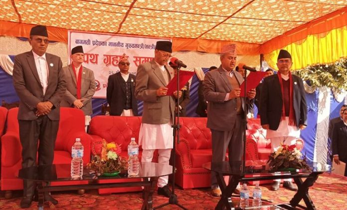 प्रदेश प्रमुख यादवचन्द्र शर्माबाट मुख्यमन्त्री जमकट्टेलले शपथ ग्रहण गरेका हुन् । मुख्यमन्त्री जमकट्टेलसँगै अन्य २ मन्त्रीले पनि शपथ लिएका छन् ।