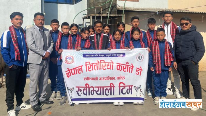 रुवी भ्याली गाउँपालिकाको दोङदेन मा.वि, च्याम्रादेवी मा.वि र लापा माध्यमिक विद्यालयबाट जम्मा १२ खेलाडी र ३ प्रशिक्षक सहितको १५ जनाको टोलीलाई गाउँपालिकाको अध्यक्ष रामसिंह तामाङले बिदाई गर्दै खेल खेल्दा अनुसाशनमा रहेर खेल्ने र जितको शुभकामना दिएका छन् ।