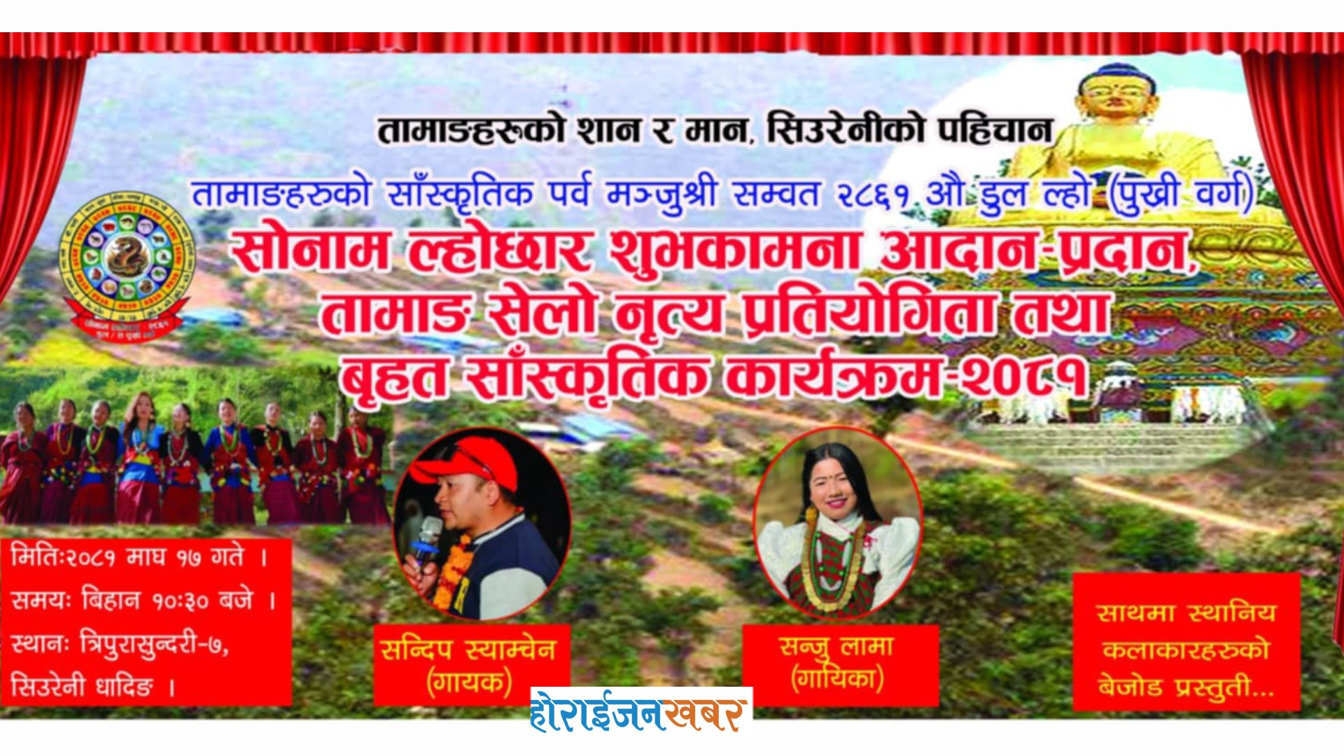 कार्यक्रममा स्थानीय लामा नाच, झाक्री नाच नाच्नुका साथै स्थानीय नवप्रतिभावान प्रतिभाहरुको प्रास्फोटनका साथ तामाङ सेलो नृत्य प्रतियोगिता समेत हुने भएको छ । उक्त कार्यक्रमको प्रमुख आकर्षक गायक/ संगीतकार तथा पत्रकार सन्दिप स्याम्चेन तामाङ को साथमा चर्चित गायिका सन्जु लामाको बेजोड संगीतिक प्रस्तुति रहने छ ।
