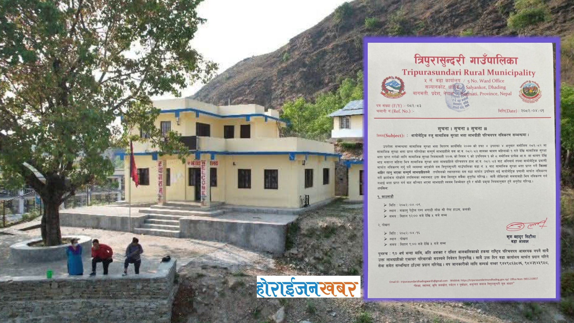 धादिङ । त्रिपुरासुन्दरी गाउँपालिका–५ बाट सामाजिक सुरक्षा भत्ता प्राप्त गर्दै आएका लाभग्राहीहरूलाई आर्थिक वर्ष २०८२/८३ को लागि अनिवार्य रुपमा बायोमेट्रिक प्रणालीमार्फत नविकरण गर्नु पर्ने भएको छ।