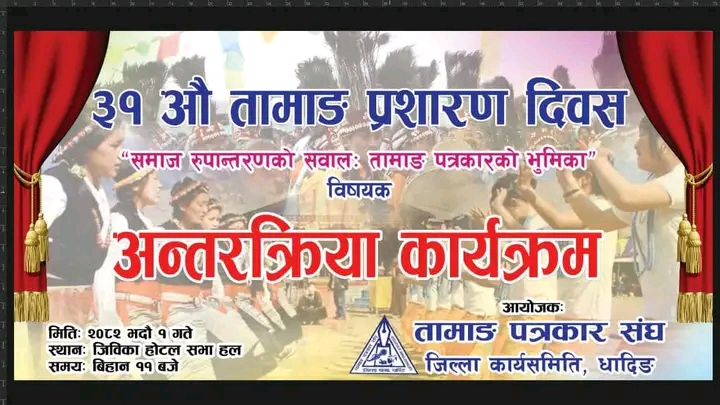 ३१औं तामाङ प्रसारण दिवसको अवसरमा हुन लागेको यस अन्तरक्रियाले पत्रकार र समुदायबीचको सम्बन्ध अझ प्रगाढ बनाउन मद्दत गर्ने आयोजकको विश्वास छ ।