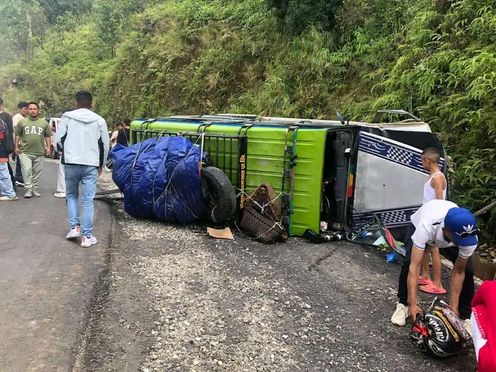 उत्तरी धादिङको खनियाबास गाउँपालिका वडा नं. १ पेर्चोबाट धादिङबेसीतर्फ आउँदै गरेको गाडी नम्बर ग १ ज ६७५५, ब्रेक नलागेर पल्टिएको बताइएको छ।