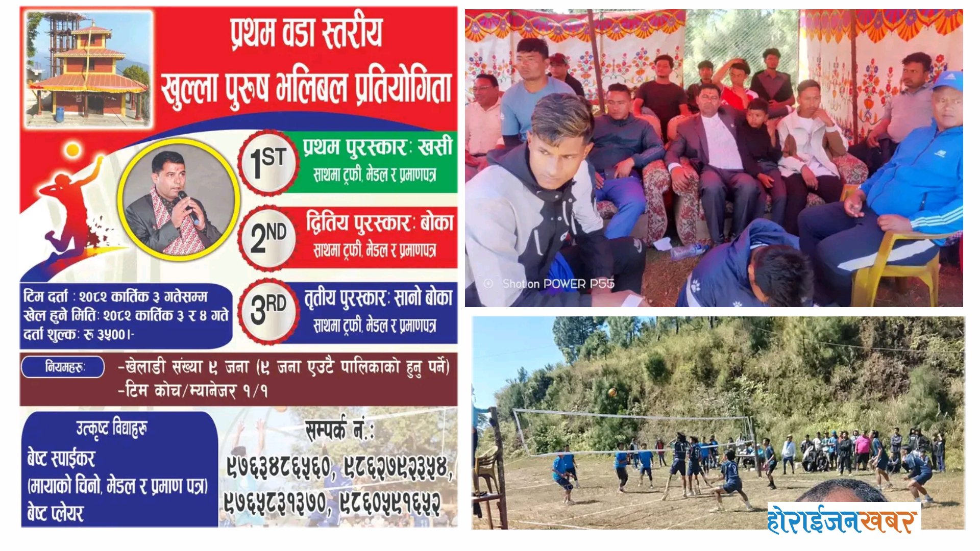 धादिङ । त्रिपुरासुन्दरी गाउँपालिका–४ द्वारा आयोजित “प्रथम वडा स्तरीय खुल्ला पुरुष भलिबल प्रतियोगिता” आज सफलतापूर्वक सम्पन्न भएको छ।