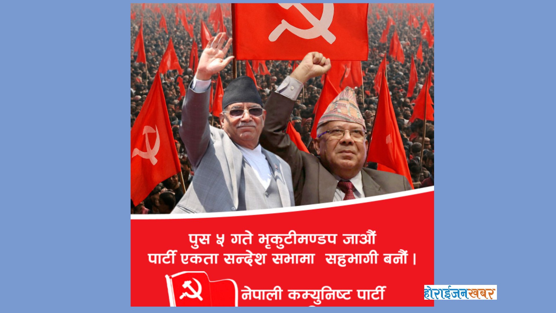 काठमाडौं । नेपाली कम्युनिष्ट पार्टीले पुस ५ गते काठमाडौंको भृकुटीमण्डपमा आयोजना हुने एकता सन्देश सभामा सहभागी भई कार्यक्रमलाई सफल बनाउन पार्टीअन्तर्गतका सबै तहका कमिटीलाई आग्रह गरेको छ।