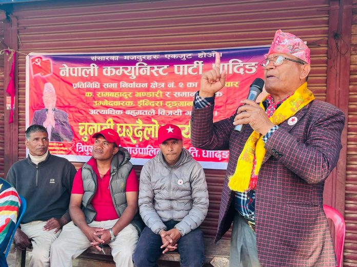 धादिङ । नेपाली कम्युनिस्ट पार्टी धादिङ क्षेत्र नम्बर २ का उम्मेदवार रामबहादुर भण्डारीले त्रिपुरासुन्दरी गाउँपालिकामा मतदाता भेटघाट कार्यक्रमलाई निरन्तरता दिने भएका छन् ।