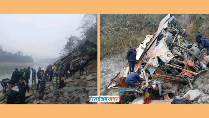 काठमाडौ । धादिङको बेनिघाट रोराङ–७ चरौंदी नजिक पृथ्वी राजमार्गमा पोखराबाट काठमाडौँ आउँदै गरेको बस त्रिशूली नदी किनारमा खस्दा मृत्यु हुनेको संख्या १९ पुगेको छ। ज्यान गुमाउनेमध्ये हालसम्म ९ जनाको मात्रै सनाखत भएको प्रहरीले जनाएको छ भने १० जनाको पहिचान खुल्न बाँकी छ।